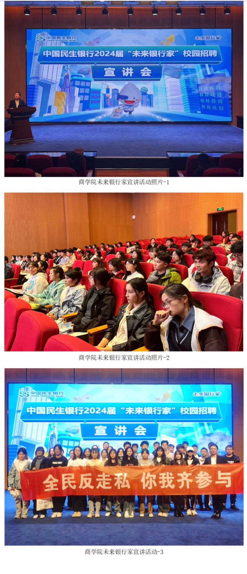 此次民生银行校园招聘宣讲会,聚焦厚植引才留才土壤、传达了民生银行注重人才、爱惜人才、培养人才的发展理念,活动的开展为学生毕业后就业问题提供了参考和发展的平台,也为那些迷茫的学生提供了就业思路,了解了就业方向。