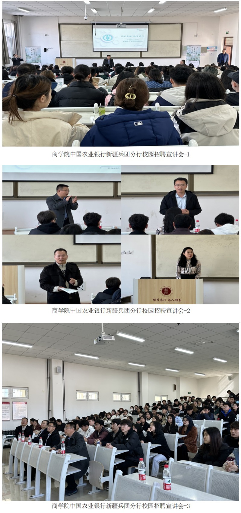宣讲会伊始,主讲人从中国农业银行的基本情况、新疆兵团分行简介、二级分行分布情况三个方面对中国农业银行进行了简单介绍。其次,主讲人详细介绍了有关校园招聘、招聘流程及入职待遇的主要内容,并鼓励同学们积极报名参加。最后,同学们积极提出问题,主讲人耐心地进行解答,现场气氛活跃。在场学生纷纷表示对中国农业银行有了更详细的了解,对就业问题有了更深层的思考。