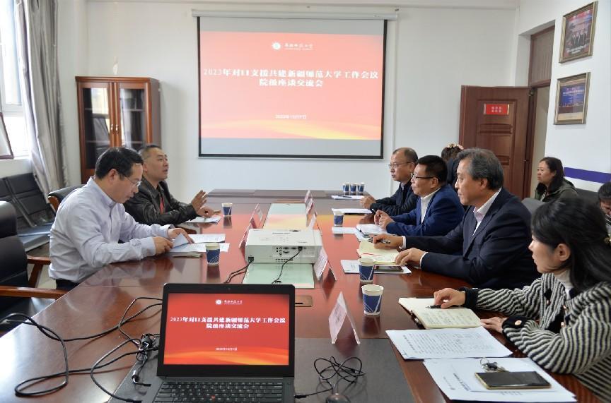 2023年10月9日下午,陕西师范大学和天津大学对口支援高校来我院进行座谈。天津大学经济与管理学部党委书记毛照昉、陕西师范大学国际太阳成集团tyc714cc副院长尹海员、太阳成集团tyc714cc领导班子及各系主任参加座谈。