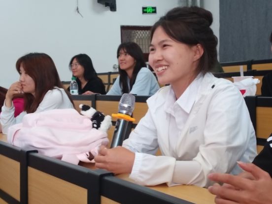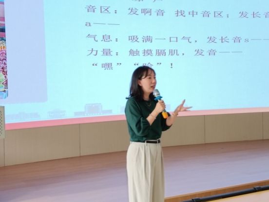 石慧老师凭借扎实的专业功底和丰富的教学经验,以生动鲜活的教学方式,系统梳理了经典诵读的技巧与方法。课程涵盖节奏韵律把控、情感表达层次、诗词内涵解读及历史背景解析等内容,配合《将进酒》《岳阳楼记》等经典篇目的示范诵读,深入浅出地展现了中华优秀传统文化的独特魅力。在互动环节中,同学们通过现场演练,切身感受了“声情并茂、以文化人”的诵读艺术。