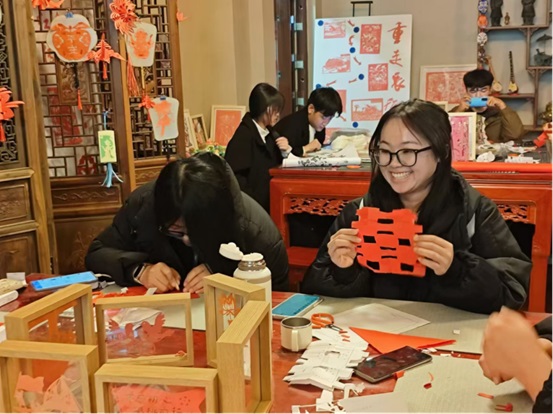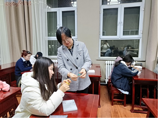 11月13日开展的剪纸与结绳双主题活动中,张婷燕老师通过剪纸艺术展现民俗智慧,带领师生剪刻“石榴花开”“民族团结”等主题作品;在结绳编制环节,师生巧手编织吉祥结,体悟“同心结”的文化象征。活动特别融入冬奥文创、红色文化元素,让传统技艺焕发时代光彩。
