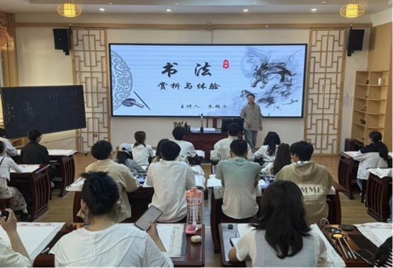 5月8日书法体验课中,朱锦方老师以“汉字演变史”为脉络,从甲骨文到行书娓娓道来。师生在提按顿挫间体验书法艺术的精妙,通过“福”“和”等主题创作,切身感受中华文化“和合共生”的哲学智慧。活动将书法练习与经典诵读相结合,引导师生在笔墨流转中厚植家国情怀。