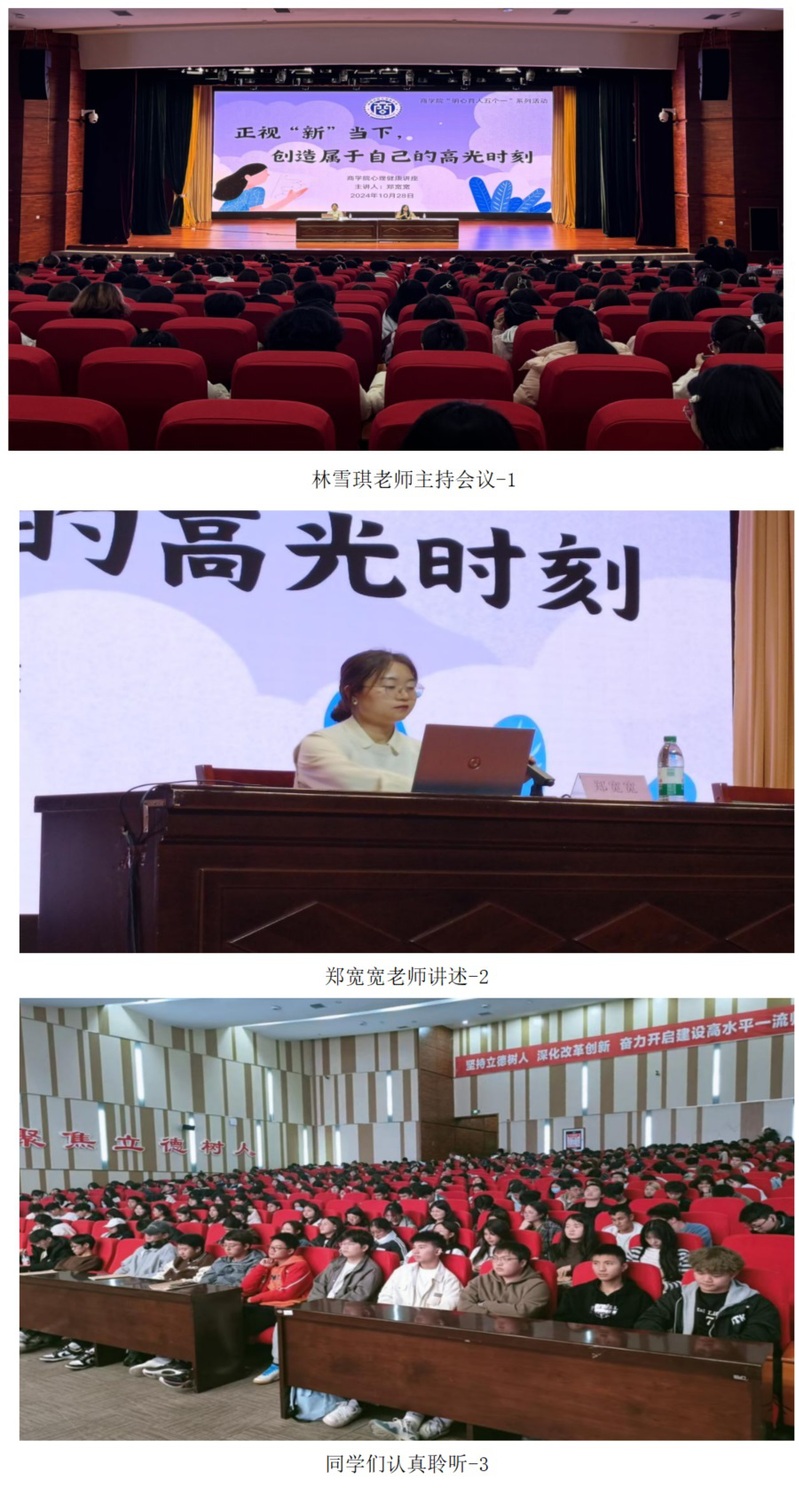 在活力满满的大学校园,青春的旋律奏响梦想之歌,同学们对未来充满期待。然而当下,信息如洪流,挑战与机遇并存,既带来广阔天地,也让不少同学陷入迷茫,在自我认知里徘徊,针对此类现象,太阳成集团tyc714cc特邀大学生心理健康中心郑宽宽老师,于2024年10月28日在昆仑讲堂,召开“正视‘新’当下,展现自己的高光时刻”心理讲座,为同学们拨开迷雾,引导大家以积极心态拥抱大学生活,绽放独特光彩。