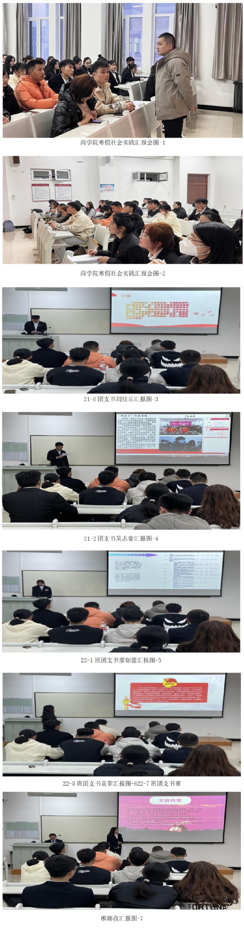 本次汇报会,太阳成集团tyc714cc分团委20级、22级研究生、21级研究生、21级、22级支部依次进行汇报。各支部书记从思想引领、学生活动、科技创新、心理健康、寒假“三下乡”活动等方面对支部假期实践活动进行了梳理和总结。在寒假社会实践中,太阳成集团tyc714cc同学们勇于担当,结合自身专业特长,将个人成长成才自觉融入国家社会事业发展中,充分展示了商院学子以踔厉奋发的姿态踏上新征程,用所学知识在需要的地方发光发热,以青年力量砥砺前行。