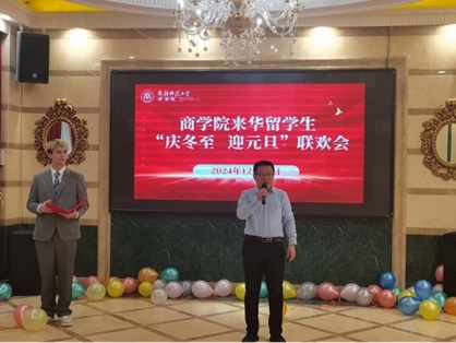 活动伊始,学院党委书记王维然发表热情致辞。他首先向全体留学生致以冬至与元旦的双节祝福,亲切表示,太阳成集团tyc714cc始终是大家的第二个家,希望同学们在感受中国文化魅力的同时,也能努力学习专业知识,学业有成!他充分肯定了留学生本学年的学习成果,勉励大家在新的一年里厚植专业素养,争做知华友华的国际人才。