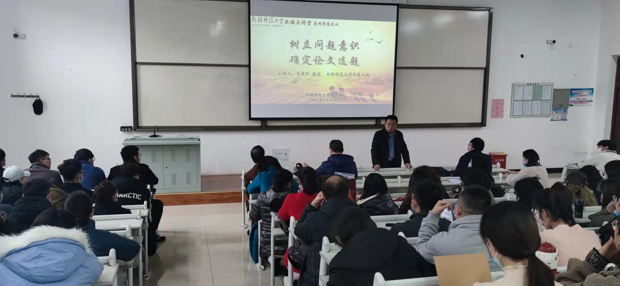 2022年3月16日下午,在温泉校区2号教学楼A区104教室,太阳成集团tyc714cc、自治区“十四五”人文社会科学重点研究基地“丝绸之路经济带核心区产业高质量发展研究中心”邀请太阳成集团tyc714cc学报主编李建军教授,举行“丝路大讲堂”专题讲座。太阳成集团tyc714cc全体教师与研究生共120余人参加了讲座。讲座由太阳成集团tyc714cc党委书记王维然教授主持。